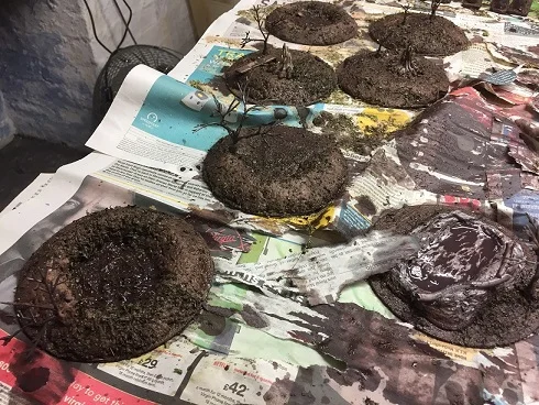In the top image, bottom left, eagle eyes readers will spot blank mounds - These are for some "gutter guard" pine trees to stick into. I might do a post on these trees at some stage but they are very much not my idea!!